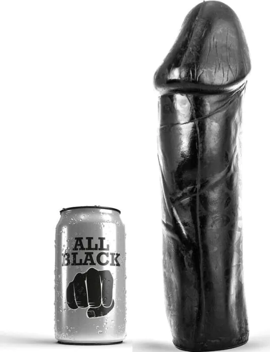 Robuuste, 28 cm lange dong van ALL BLACK met een vaste schacht zonder testikels — ontworpen om volledig in te brengen. Gemaakt van PVC, ftalaatvrij en geleverd in een beschermhoes. Geschikt voor wie een stevige, lange dildo zoekt; gebruik water- of siliconenglijmiddel (merk Black Hole aanbevolen).