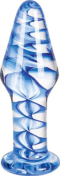 Dit is een glazen anaalknop met een slanke, kegelvormige punt en blauwe spiraalaccenten in het glas. In de winkel leg ik hem altijd zo uit: door het stevige, gladde glas glijdt hij prettig en de conische punt helpt bij de eerste aanraking. De spiralen in het binnenwerk geven bij in- en uitrollen een subtiele textuur zonder ruw te voelen. Omdat het van glas is, kun je er ook mee spelen qua temperatuur — even koelen in de koelkast of zacht opwarmen in lauwwarm water verandert de sensatie.