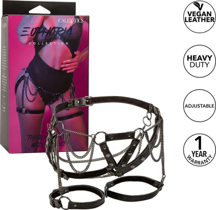 Beleef een nieuwe dimensie van sensualiteit met het Calexotics Euphoria Arnés. Dit premium arnes met metalen kettingen biedt niet alleen een gedurfde uitstraling, maar ook een comfortabele pasvorm dankzij de verstelbare banden. Perfect voor iedereen die houdt van het combineren van stijl en plezier in hun BDSM-ervaring.
