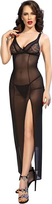 Verken de elegantie met deze lange babydoll van ChiliRose. Gemaakt van zachte, elastische kant die je figuur accentueert en een verstelbare pasvorm biedt. Inclusief bijpassende tanga voor een complete look.