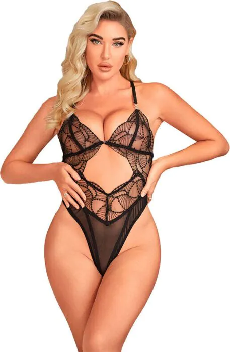 Ervaar de sensatie van een sexy body met doorzichtig kant. Dit ontwerp geeft je een gevoel van zelfvertrouwen en stijl, great voor intieme momenten of een gedurfde look.