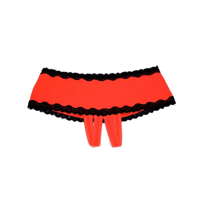 Fantástico short color rojo, con los bordes de encaje negro, de la prestigiosa colección RISQUE by Shirley.