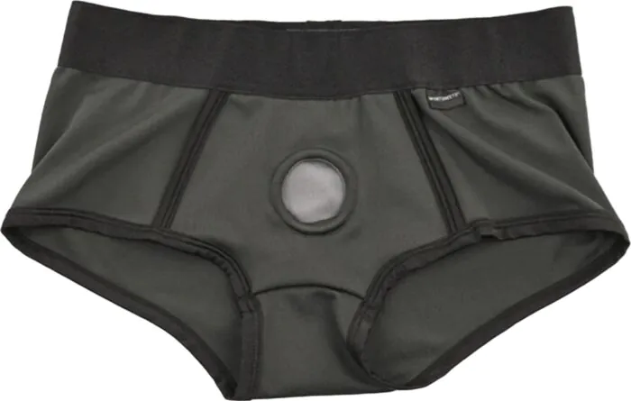 Comfortabel boxerharnas van Sportsheets dat je dagelijks kunt dragen als ondergoed. De stevige 38,1 mm ring houdt een dildo op zijn plek, terwijl twee geïntegreerde zakjes ruimte bieden voor compacte vibratiekogels. Zacht, rekbaar materiaal en een sluitende tailleband zorgen voor een betrouwbare pasvorm — handig als je op zoek bent naar een discreet, functioneel harnas voor dagelijks gebruik of voor play met seksspeeltjes.