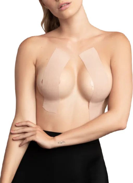 Comfort en ondersteuning met de Bye Bra lichaamsband. Deze elastische en ademende tape voelt als een tweede huid en zorgt ervoor dat je vrij kunt bewegen. Met een lengte van 5 meter en een breedte van 6,5 cm is het veelzijdig en past het zich aan elke cupmaat aan, waardoor je veilig en elegant blijft. Details Waterbestendig Waterdicht Afmetingen 5 m x 6,5 cm Hoe te gebruiken Plaats de tape op schone en droge huid, zorg ervoor dat deze goed hecht. Het is geschikt voor gebruik onder strakke kleding of feestjurken. Hoewel het niet nodig is, kun je een beetje vochtinbrengende crème op de huid aanbrengen voor extra comfort. Onderhoud van de stof Aangezien het een kleefproduct is, wordt aangeraden het niet opnieuw te gebruiken. Bewaar de tape op een koele en droge plaats om de kwaliteit te behouden.