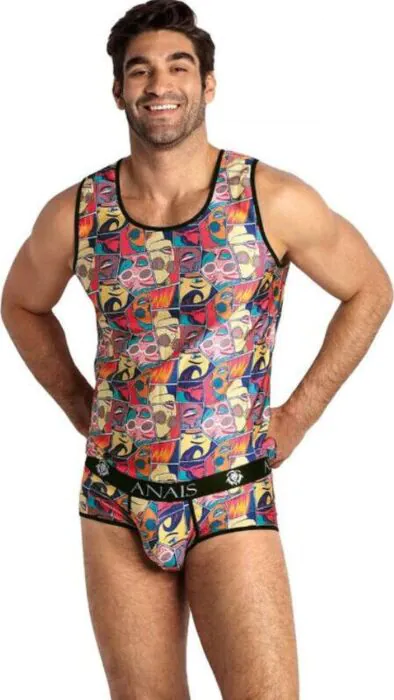 De ANAIS MEN COMICS TOP L is een comfortabele tanktop gemaakt van zachte modal met een opvallend stripprint. Geschikt voor mannen die zich willen onderscheiden.
