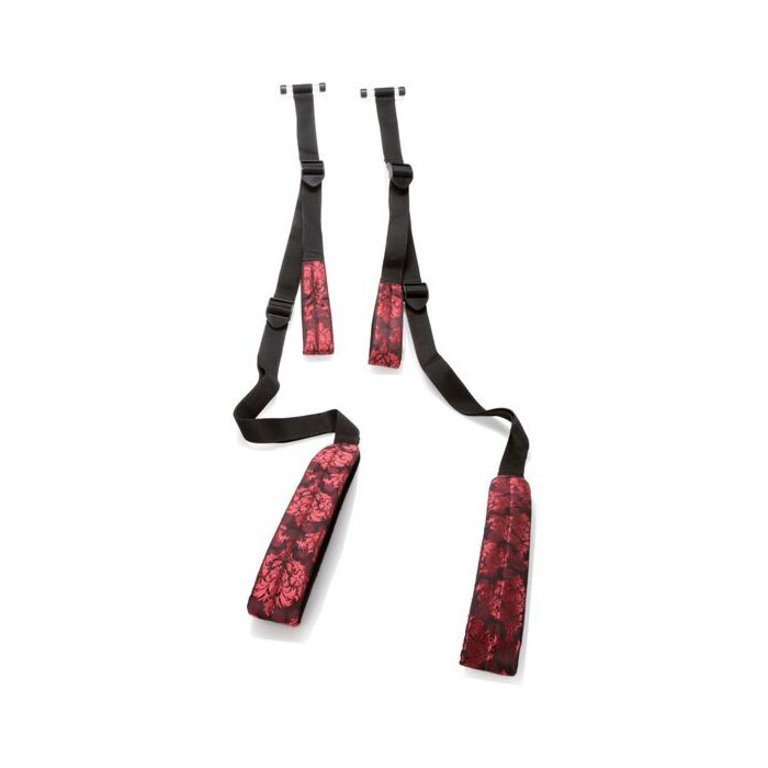 Arnés universal con correas resistentes y ganchos para la colocación segura sobre la puerta.