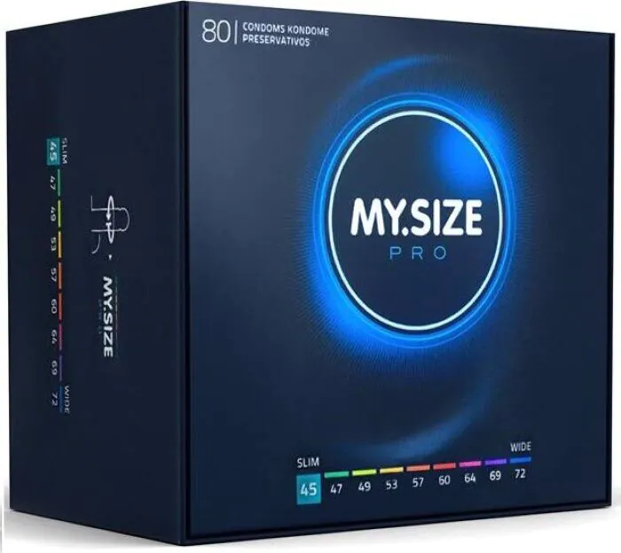 MY.SIZE PRO biedt 80 ultra-sensitieve preservatieven van 45 mm. Ideaal voor mannen die een perfecte pasvorm en een natuurlijke sensatie willen.