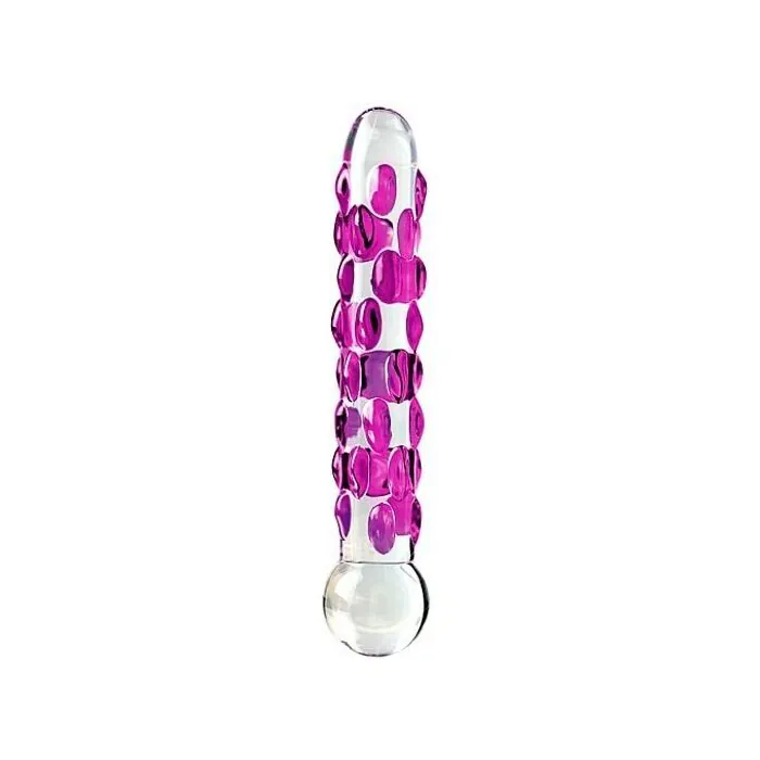 El consolador de vidrio número 7 Icicles esta hecho a mano con cuidado en los pequeños detalles, tiene unas medidas insertables de 15 x 2,7 cm y bolas de vidrio soplado al rededor de su cuerpo que ayudaran a la estimulación. Es hipoalergénico, así que es completamente seguro para jugar con tu cuerpo y no es poroso, así que limpiarlo será muy sencillo.