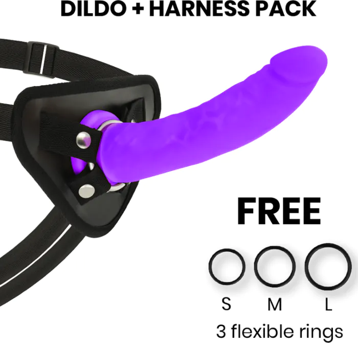 Dit is een complete strap-on set: een dildo van medische siliconen met bijbehorend harnas en bevestigingsring. Met mijn ervaring in de winkel zeg ik: dit is een eenvoudige, betrouwbare set voor koppels die willen beginnen met draagbaar penetratiespel of voor wie een onderhoudsarm seksspeeltje zoekt. De medische siliconen voelt zacht en neemt snel lichaamstemperatuur aan, wat het gebruik comfortabeler maakt.