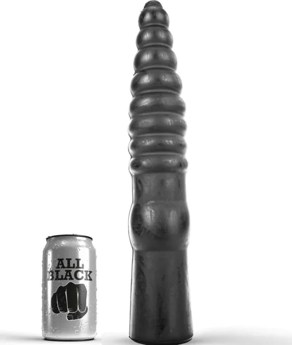 Dit is een lange, geribbelde anal dildo van het merk ALL BLACK: 33 cm insteeklengte met ongeveer 6 cm diameter. In de winkel leg ik hem zo uit: dit speeltje is gemaakt voor wie echt diepte zoekt en voor wie een stevige, voelbare structuur prettig vindt. De ribbels geven extra stimulatie bij in- en uitbewegingen; door de lengte kun je variëren met hoe ver je gaat.
