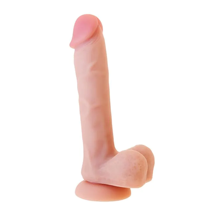 Realistische, stevige dildo van S Pleasures met een dubbele laag silicone voor een levensechte textuur en extra venige stimulatie. 19,5 cm insertabel voor wie meer lengte zoekt. Voor gebruikers die een realistisch, duurzaam seksspeeltje willen dat op een vlakke ondergrond blijft zitten en met een harnas gebruikt kan worden.