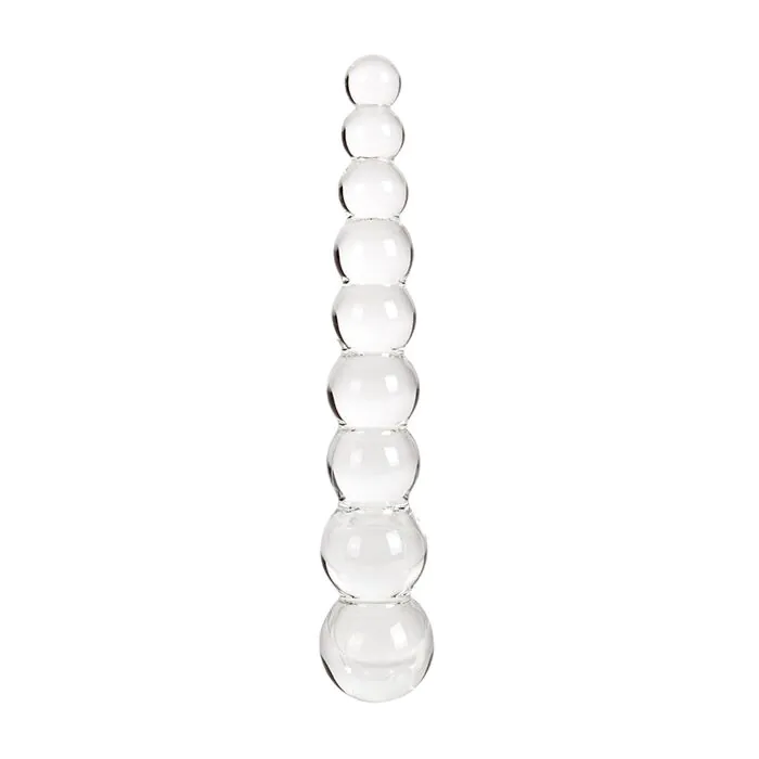 De Crystal VEGA is een recht glazen dildo met een as opgebouwd uit opeenvolgende bolletjes die van klein naar groter lopen. Als ik je in de winkel help zou ik zeggen: dit is een stevig, glad seksspeeltje dat nauwkeurige controle geeft — uitstekend wanneer je stapje voor stapje wilt wennen aan penetratie. Het grote pluspunt: het temperatuureffect van glas geeft extra variatie zonder ingewikkelde techniek.