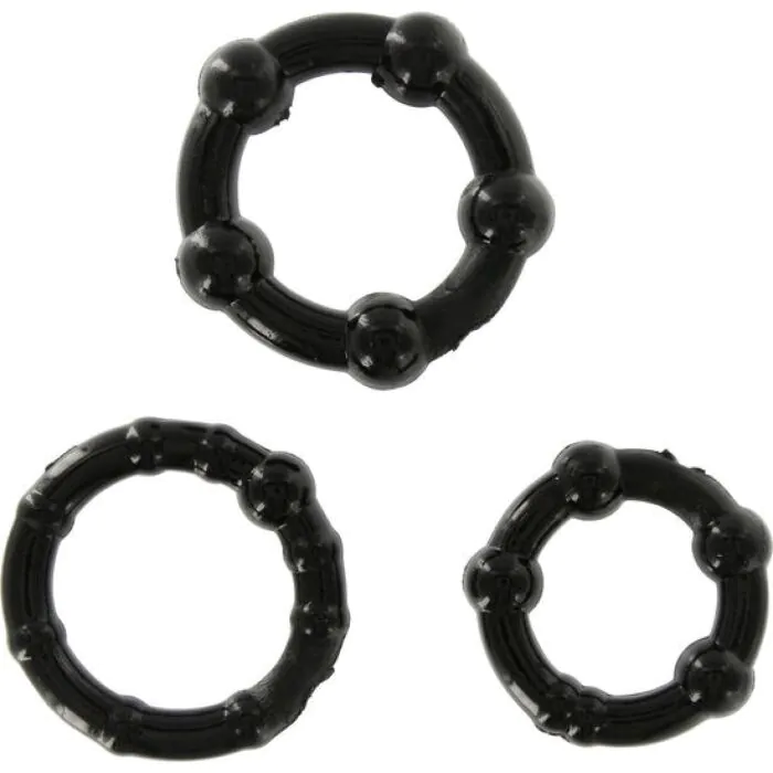 Verleng je erectie met deze set van drie silicone penisringen. Geschikt voor elke maat en ontworpen om de ejaculatie uit te stellen.