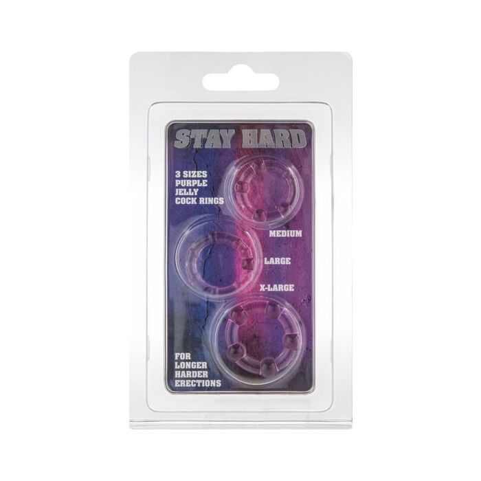Deze set van drie siliconen ringen in een verleidelijke lila tint is de sleutel om je prestaties te verbeteren en het plezier te verlengen. Elke ring, in verschillende maten (21 mm, 23 mm en 24 mm), past comfortabel om je penis en helpt je een stevige en langdurige erectie te behouden. Zeg vaarwel tegen zorgen en laat je meeslepen door onbeperkt genot!