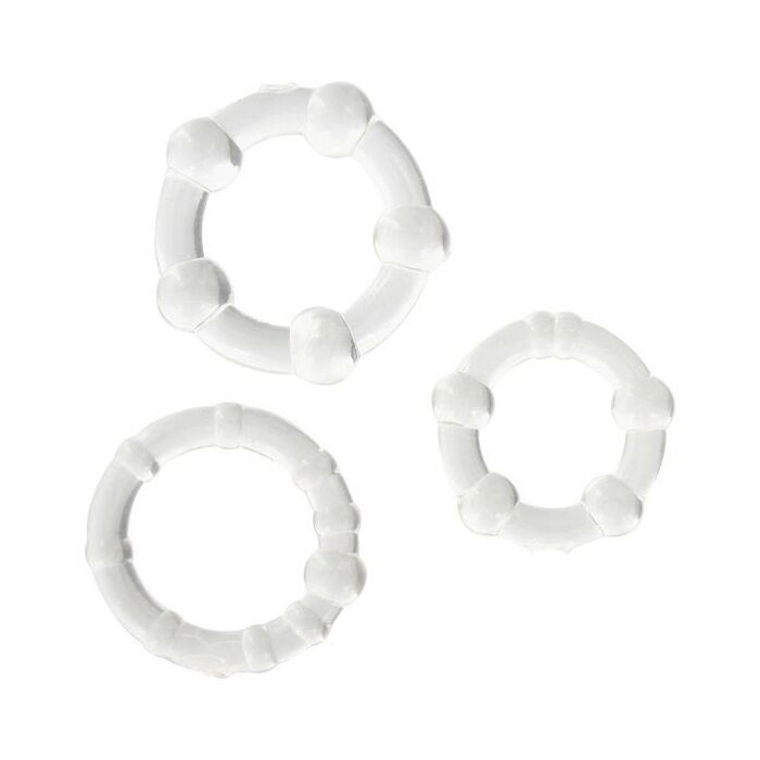 ¡Versterk je intieme momenten met de Set van Drie Transparante Penisringen! Ook bekend als de Stay Hard Three Ring Clear, is deze set de sleutel om je seksuele prestaties naar een hoger niveau te tillen. Gemaakt van hoogwaardige siliconen, passen deze ringen van verschillende groottes perfect bij jou, wat zorgt voor comfort en genot. Wat maakt ze zo speciaal? Ontdek het zelf!