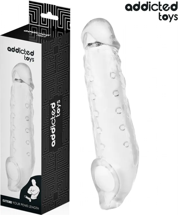 Verbeterde lengte en dikte met de Addicted Toys penisfunda. Deze transparante, hoogwaardige materiaal laat je de actie zonder afleiding zien en zorgt voor een comfortabele en veilige ervaring. Met een totale lengte van 27 cm en een insertie van 21 cm, biedt het een diepere penetratie voor extra intensiteit.
