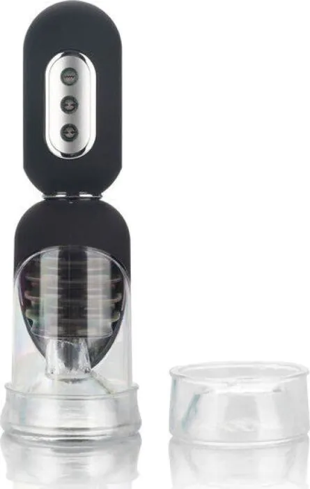 Volautomatische penispomp met instelbare zuigkracht en extra vibratie voor wie meer variatie wil dan een handpomp. Geschikt voor mannen die willen experimenteren met pompen en sensatie rondom de eikel, met twee ringen voor verschillende afdichtingen en een verwijderbare hoes die je makkelijk kunt reinigen. Werkt op 3xAAA — handig en draagbaar, zonder gedoe met kabels.
