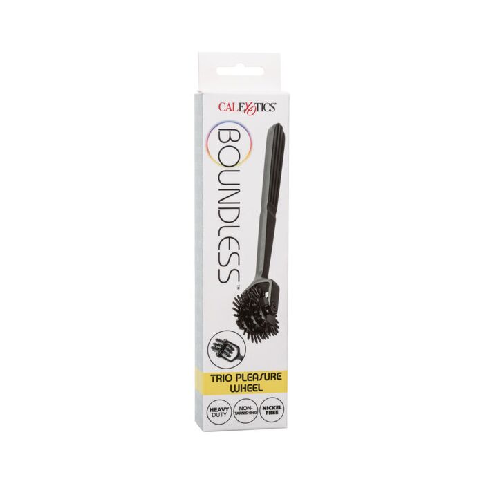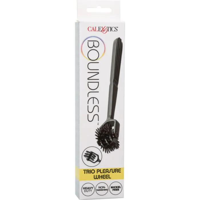 Geniet van eindeloos huiveringwekkend plezier met de gedurfde Boundless Trio Pleasure Wheel. De uitdagende Pleasure Wheel is ontworpen om opwinding te brengen met drie roterende pinwheels van 22 punten, hoogwaardige hardware en roestvrij materiaal. Het sterke en roestvrije materiaal is gemaakt om lang mee te gaan voor eindeloos speelplezier. Bij elke rol over je verlangende huid zal dit gepassioneerde wiel je opwinden, prikkelen en elk intiem moment verheffen.
