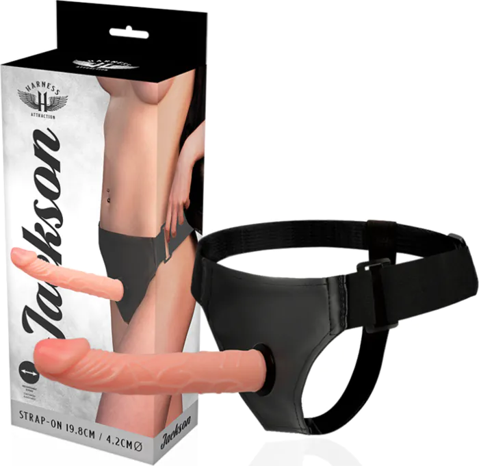 Geniet van de vrijheid om je fantasieën waar te maken met het Jackson harnas van Harness Attraction. Dit harnas heeft een realistische penis van TPR, met een afmeting van 19.8 x 4.2 cm, ontworpen voor optimaal genot. Het innovatieve Harness click systeem maakt het mogelijk om verschillende penissen en dongs aan dit harnas te bevestigen, waardoor je eindeloos kunt variëren.
