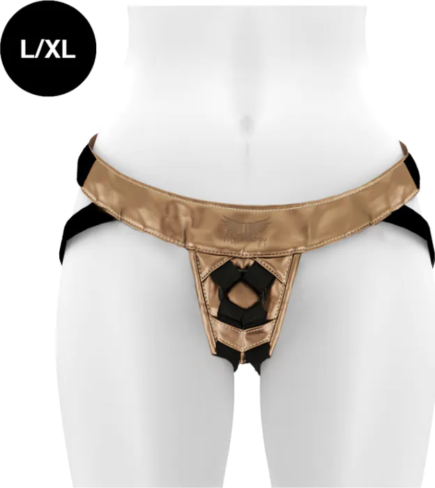 Ervaar de vrijheid van strap-on seks met het Mythology Fantasy Harness. Dit L/XL arnes is gemaakt van duurzame, veganistische materialen en zorgt voor een comfortabele pasvorm.