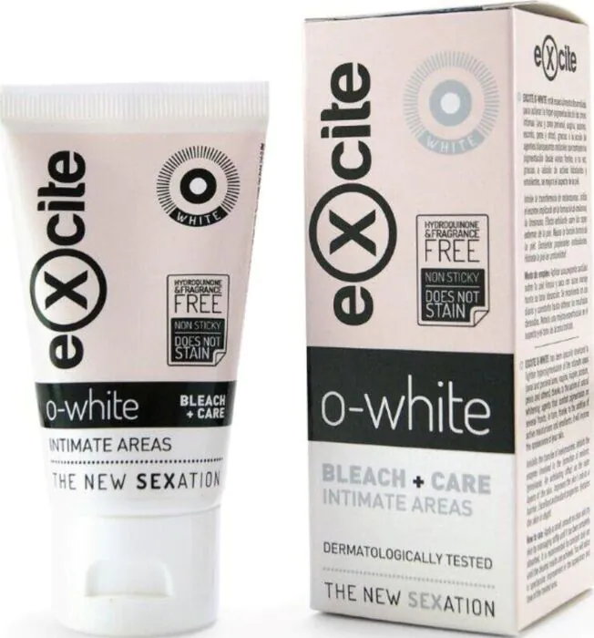 Ja, EXCITE O WHITE is dermatologisch getest en ontwikkeld om veilig te zijn voor gevoelige huid in intieme gebieden.