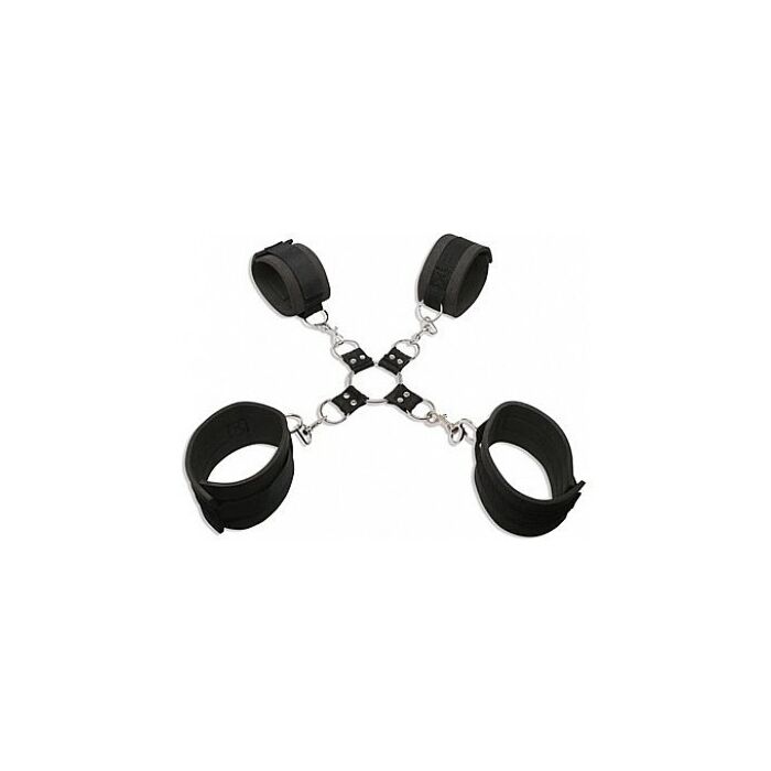 De neopreen pols- en enkelboeien worden verbonden door een centrale ring, waardoor je je partner op een comfortabele en veilige manier kunt immobiliseren. Vergeet ingewikkelde bindtechnieken en moeilijke knopen, met dit kit is alles eenvoudig en praktisch. Plaats eenvoudigweg de boeien om de polsen en enkels van je geliefde, pas ze aan met het klittenband en je bent klaar om van een unieke ervaring te genieten!
