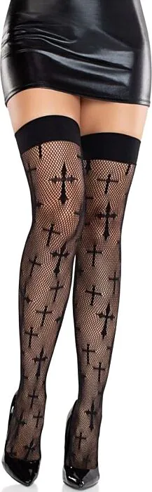 De Worship Me Cross Net Thigh Highs van Leg Avenue zijn ontworpen voor wie houdt van een mix van mysterie en verleiding. Met een gedetailleerd ontwerp van net en gothische kruisen, zijn deze kousen great voor een gedurfde look.