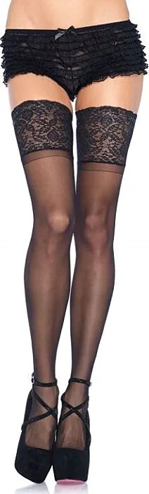 Kousen Leg Avenue - Zwarte zelfklevende kousen met kant