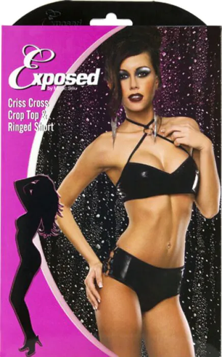 Lingerie Exposed Liquid Onyx Crop Top & Boy Short XS