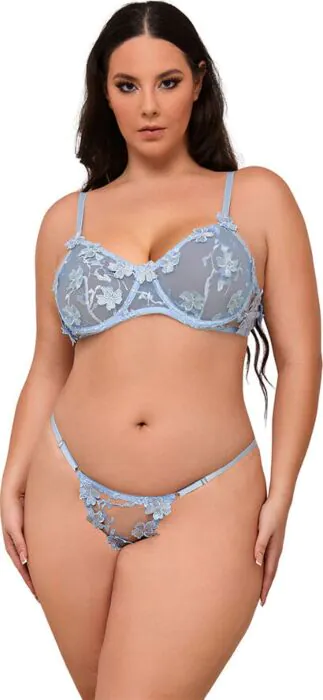 Lingerie Set SUBBLIME Blue Sexy Floral Mesh L/XL