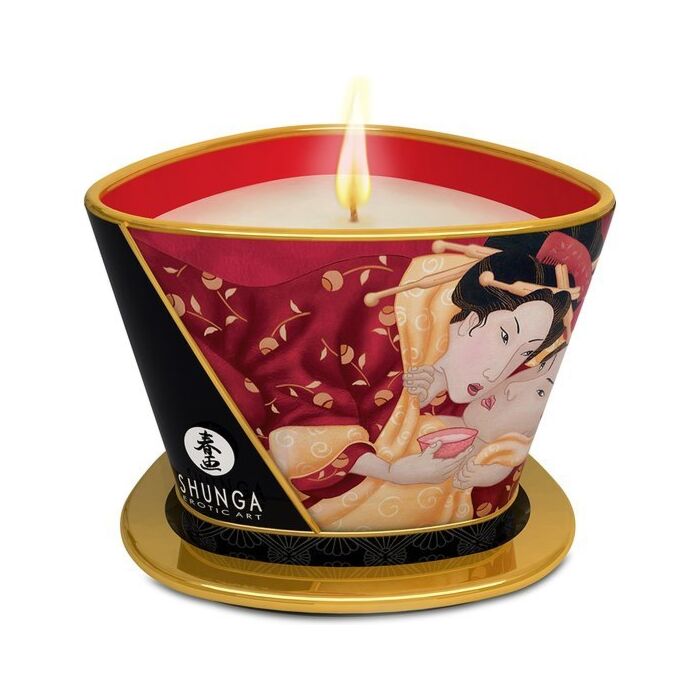 Ben je klaar om het vuur van passie aan te wakkeren met de Shunga aardbeienmassagekaars van 170 ml? Bereid je voor op een unieke ervaring die de zachtheid van een zoete massage combineert met een intieme en sensuele sfeer. Deze Shunga massagekaars zal je zintuigen prikkelen met zijn sensuele aroma's en je verwennen met warme olie om je partner te masseren.