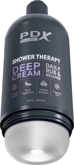 Geniet van een unieke ervaring met de PDX PLUS+ Shower Therapy. Deze masturbator in de vorm van een shampoo fles biedt discreet plezier voor de veeleisende man.