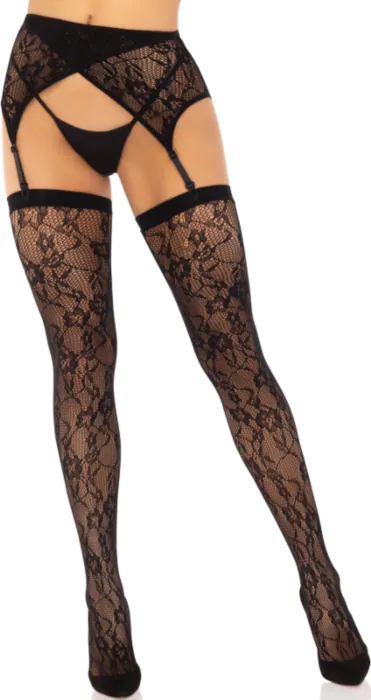 Voeg een sensuele touch toe aan je lingerie met deze elegante kanten medias van Leg Avenue. Perfect voor speciale gelegenheden of intieme momenten.