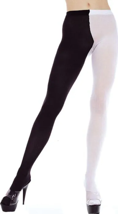 Opake panty van Music Legs in maat XXL met een opvallende twist: één been zwart, het andere wit. Deze panty geeft meer dekking dan doorschijnende kousen en werkt goed als statementpiece bij feestelijke of speelse outfits. Kies dit model als je een ruime pasvorm zoekt met een asymmetrische uitstraling zonder veel poespas.