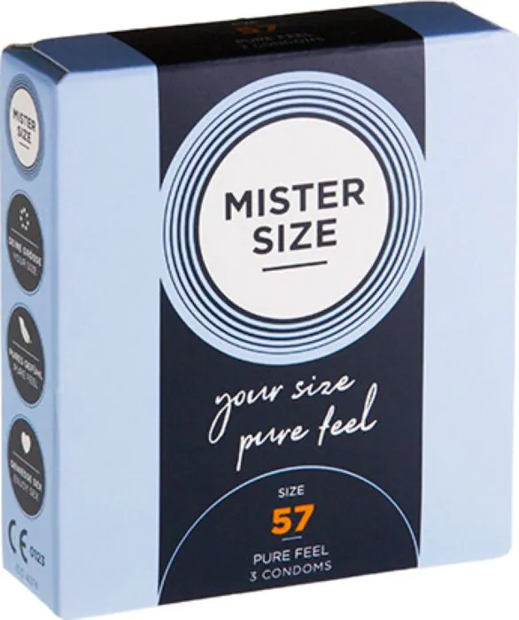 MISTER SIZE 57 biedt een veilige en comfortabele pasvorm voor een natuurlijke seksuele ervaring. Ultrafijn latex zorgt voor intensiteit zonder in te boeten op veiligheid.