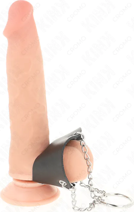 De metalen anillo biedt een stevige druk, wat zorgt voor een intens gevoel. De combinatie met het leren riem kan extra stimulatie en controle geven.