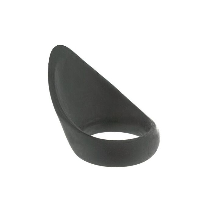 Anillo negro de silicona con forma de lengua, diseñado para que se ajuste de forma prieta y cómoda alrededor de tu pene y testículos, con el fin de masajear con delicadeza tu perineo.