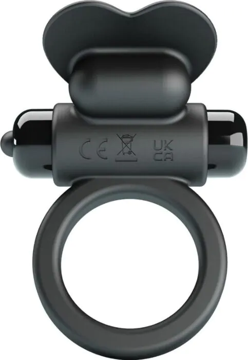 De PRETTY LOVE Debonaire is een silicone vibratiering met ingebouwde rabbit-clitorisstimulator en 10 vibratiefuncties. Hij omsluit de basis van de penis om erectie en sensitiviteit te ondersteunen, terwijl de kleine vibrerende kogel direct contact maakt met de clitoris van je partner. Geschikt voor koppels die zoekende zijn naar extra stimulatie tijdens penetratie — werkt op 1 AAA-batterij. Gebruik water-based glijmiddel.