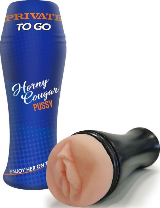 De Horny Cougar To Go van PRIVATE is een compacte, travel-ready masturbator in zakformaat. In de winkel zou ik hem zo omschrijven: klein genoeg om in je hand of tas te passen, met een zachte, realistische textuur en een comfortabele grip die strelende en zuigende bewegingen ondersteunt. Omdat het een niet-trillende vagina is, draait alles om het gevoel van de sleeve en je eigen ritme — geen batterijen, geen lawaai.