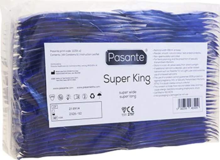 De Pasante Super King XXL biedt een uitstekende pasvorm voor diegenen die behoefte hebben aan meer ruimte. De 144 stuks zorgen voor een goede voorraad. Houd er rekening mee dat ze niet geschikt zijn voor iedereen, vooral niet voor diegenen die kleinere formaten nodig hebben.