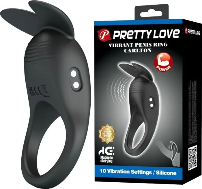 De Pretty Love Carlton is een elegante ring voor de penis met een stimulatore voor de clitoris. Geniet samen van krachtige vibraties met 10 snelheden.