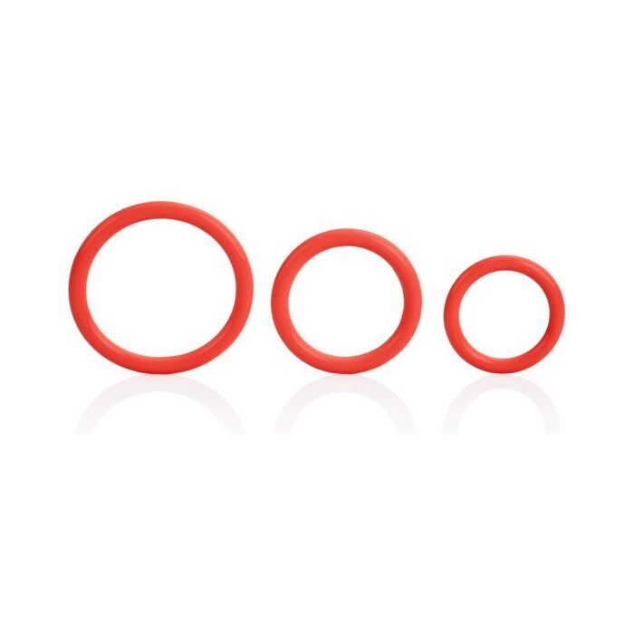 Maak je klaar om je intieme spel naar een hoger niveau te tillen met de rode Tri-rings set! Deze set van drie rode siliconen ringen garandeert stevigere, langdurige erecties en intensere orgasmes. Klaar om ongelooflijke sensaties te ervaren?