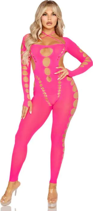 Accentueer je rondingen met dit spannende bodystocking van Leg Avenue. Gekenmerkt door gedurfde snits en een open rug, geeft deze lingerie je een speelse uitstraling die perfect is voor festivals en andere uitgaansgelegenheden. Met een blend van 95% nylon en 5% elastaan, biedt het comfort en stretch waar je op kunt vertrouwen.