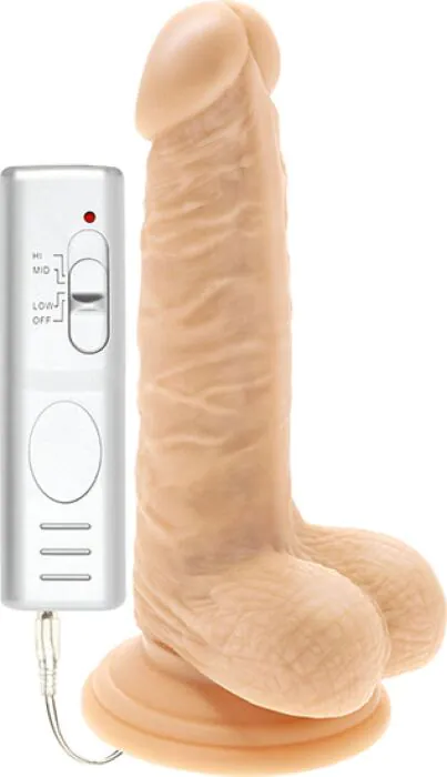 Dit is een realistische vibrator-dildo met penissculptuur inclusief testikels, bedoeld voor mensen die een natuurgetrouwe vorm willen en tegelijk praktische functies zoals een sterke zuignap en harnascompatibiliteit waarderen. De dildo heeft een stevige, toch licht flexibele feel dankzij PVC; dat geeft voldoende stevigheid voor pin-point stimulatie zonder dat hij volledig hard aanvoelt. Belangrijk: deze uitvoering heeft een kabelgebonden afstandsbediening en werkt op 3 AA-batterijen (niet inbegrepen).