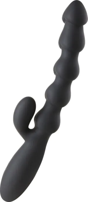 Dit is een compacte rabbitvibrator die anders is dan de meeste: het insertabele gedeelte bestaat uit een reeks bolletjes in een omgekeerd hartvormig profiel, met een taps toelopende punt die de inbreng vergemakkelijkt. Het apparaat is flexibel dankzij een interne flexo, waardoor je makkelijk de hoek kunt aanpassen tijdens penetratie. De fabrikant geeft aan dat hij speciaal ontworpen is voor anale penetratie met extra stimulatie richting het perineum, dus hij voelt anders aan dan een standaard recht dildo of een groot rabbitmodel.