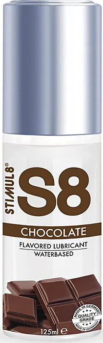 Een smakelijk waterbasis glijmiddel van STIMUL8 S8 met chocolade-aroma in een gebruiksvriendelijke 125 ml fles. Geschikt als glijmiddel voor orale liefkozingen en intimiteit; milde formule zonder parabenen, ftalaten of gluten. Kies dit product als je een eetbare smaak wilt zonder agressieve conserveermiddelen en met goede prijs-kwaliteit voor dagelijks gebruik.