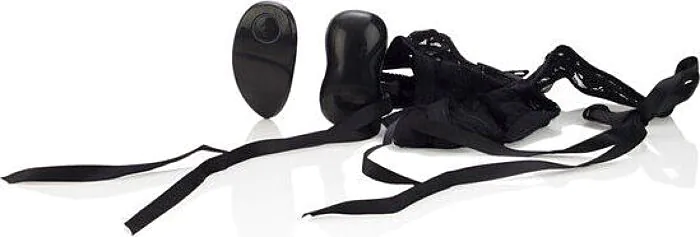 Een kanten string met een afneembare bulletvibrator van CALEXOTICS: compact, gebruiksvriendelijk en met 10 vibratiestanden. Geschikt voor wie een discreet, draagbaar seksspeeltje zoekt om solo of samen te gebruiken. Omdat de bullet uitneembaar is, gebruik je 'm ook los in de hand of als extraatje in ander intiem speelgoed. Werkt op 2 AA-batterijen (niet inbegrepen).