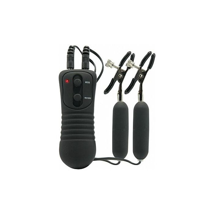 Plaats eenvoudigweg de klemmen op je tepels en pas de druk aan met de regelbare schroef. Kies het vibratiepatroon dat je het meest opwindt en laat de verleidelijke vibraties je naar een hoogtepunt brengen. Combineer ze met het meegeleverde masker voor een complete zintuiglijke ervaring!