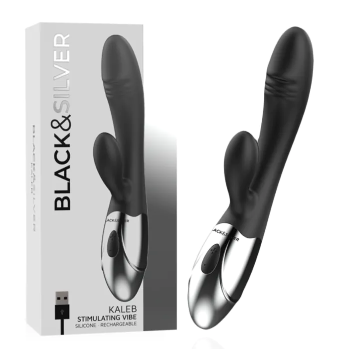 De Kaleb is een rabbitvibrator van BLACK&SILVER met twee superkrachtige motoren: één in de punt voor interne stimulatie en één in de rabbit voor clitoris. USB-oplaadbaar en afgewerkt in superzacht hypoallergeen siliconen. Geschikt voor wie stevige, gerichte stimulatie wil; niet geschikt als je absoluut stilte of volledige onderdompeling zoekt. Wordt geleverd met een proefflacon water-based glijmiddel.