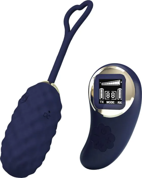 Compact vibratie-ei van PRETTY LOVE voor sologebruik en koppels. Silicone buitenlaag met USB-oplaadbare motoren, 10 vibratiepatronen en 9 snelheden en een draadloze afstandsbediening met digitaal display. Stil en discreet: handig als je iets wil dat makkelijk te bedienen is door jezelf of je partner.